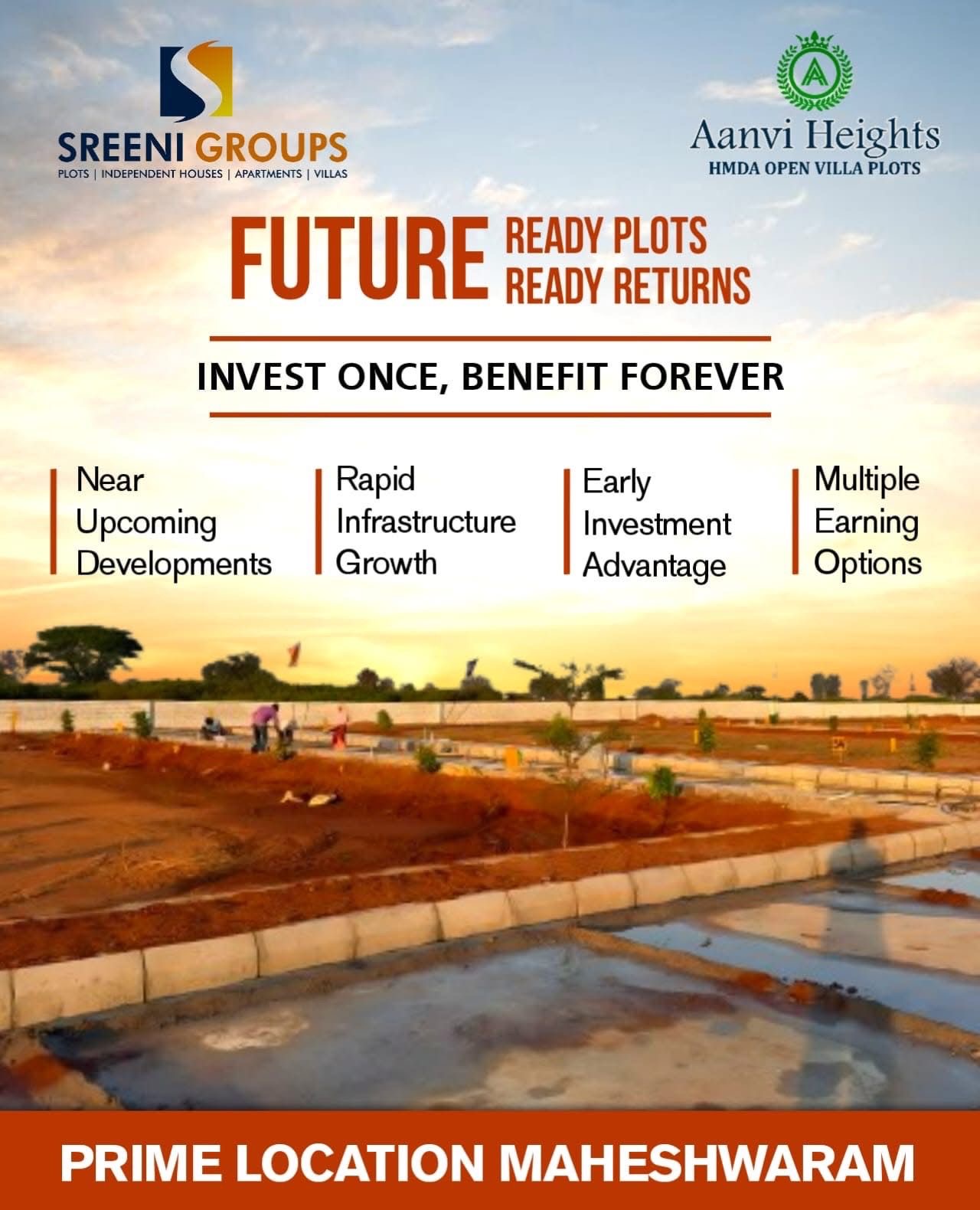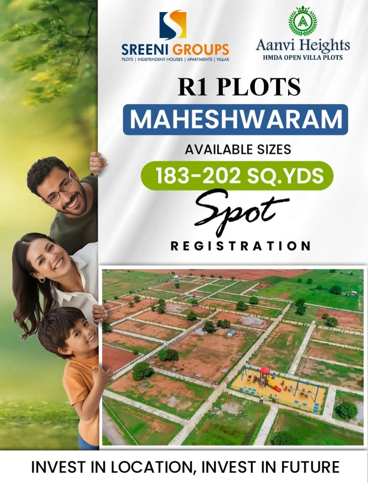 Buy HMDA & TS RERA approved plots at Aanvi Heights, Maheshwaram, Hyderabad. 100% developed layout, plots from ₹23,000/sq yd. Book now.